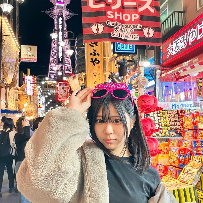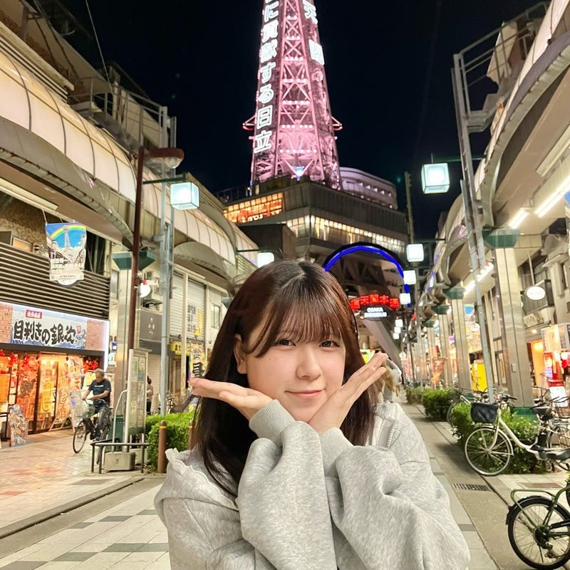 モデル活動中、高校1年生。2025年10月5日(日)、スパワールド階段上ピロティで開催された『TETSUJIN 繋がるマルシェ』の関連イベント、『通天閣花魁道中』に参加したことがきっかけで、新世界の情報ブログの街歩き連載に登場しています。